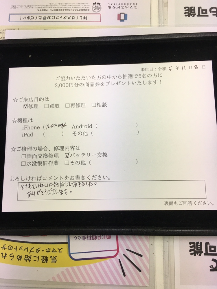 スマホスピタル藤沢 iPhone12ProMaxを大容量バッテリーに交換致しました!