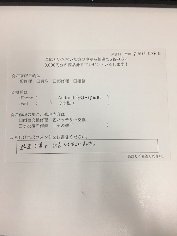 スマホスピタル藤沢 Xperia10Ⅲのバッテリーを交換を致しました!