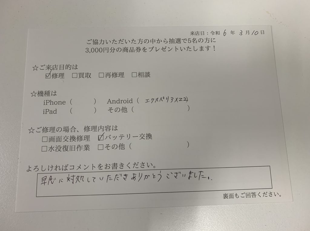 スマホスピタル藤沢 XperiaXZ2のバッテリー交換を致しました!