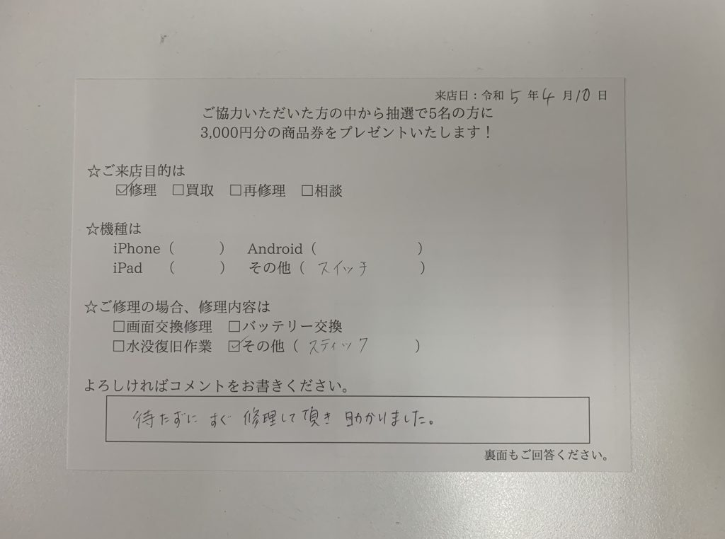 スマホスピタル藤沢 Nintendo Switchのステックを交換致しました!