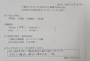 スマホスピタル藤沢 【iPhone XR】お客様からコメントをいただきました!