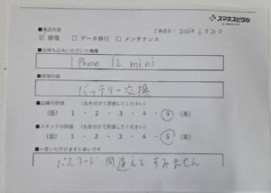 スマホスピタル藤沢 【iPhone 12mini】(大容量)バッテリー交換