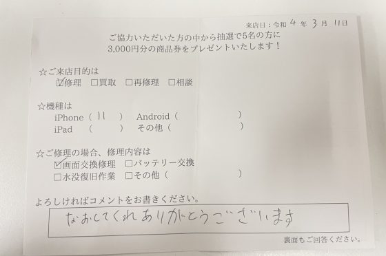 弊社の修理サービスをご利用いただいきましたお客様の声です。