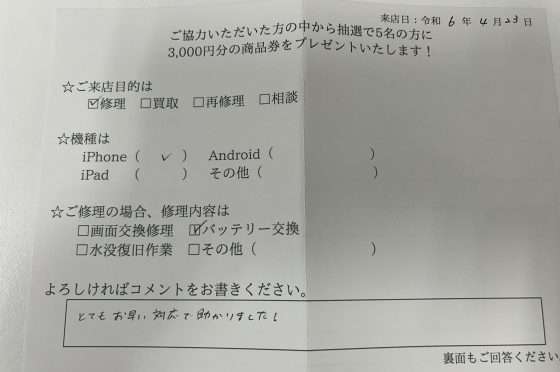 弊社の修理サービスをご利用いただいきましたお客様の声です。