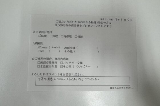 弊社の修理サービスをご利用いただいきましたお客様の声です。