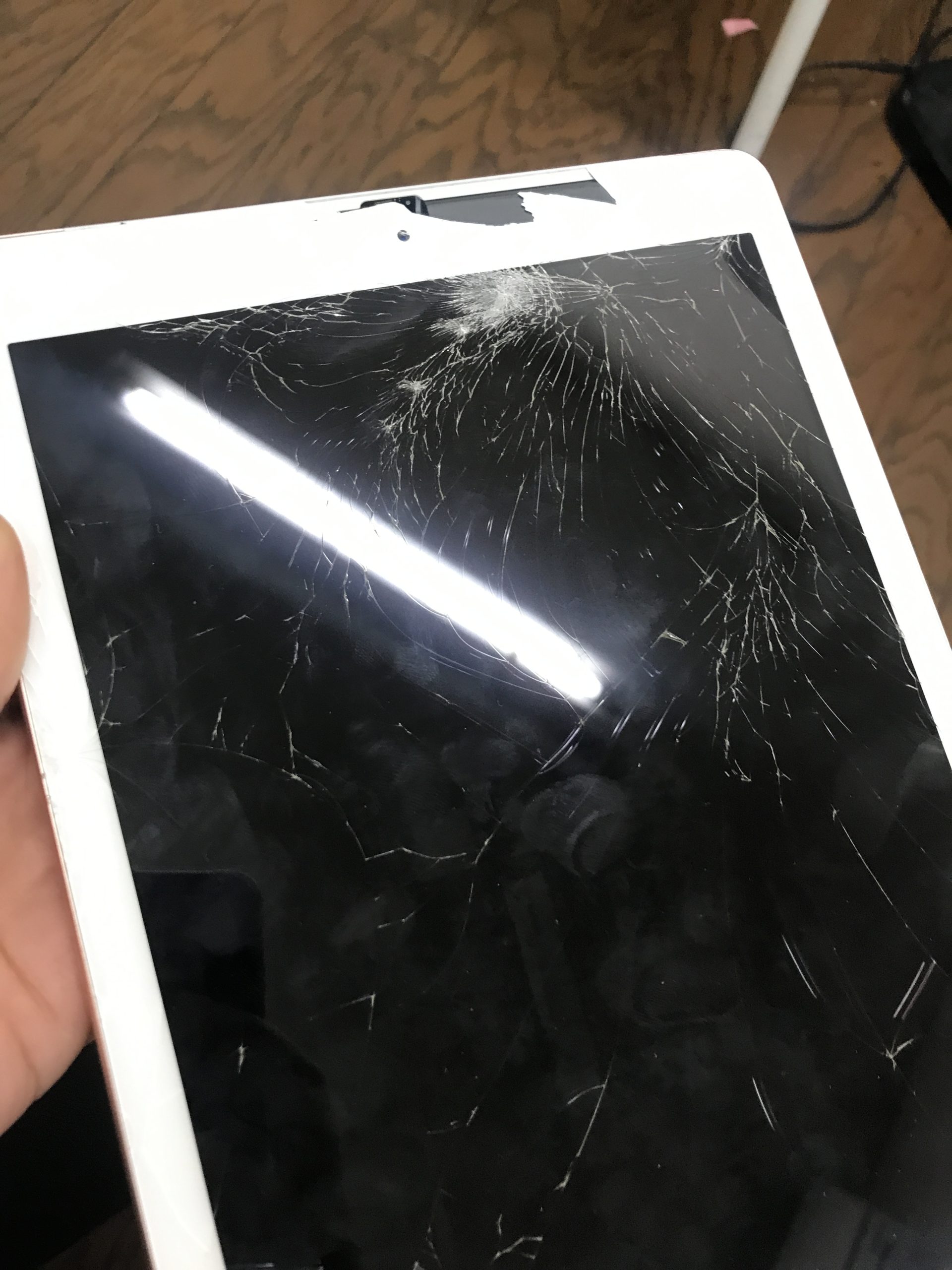 iPadは画面から開封していきます。ネジを取る必要はなく、ヒートガンなどをあて接着部分を溶かしながら開封していきます。そのためiPhoneのように15分の修理時間で・・・とまではいきませんが、6時間から1日程お時間をいただいております。
