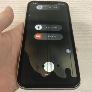 写真のような画面割れや液晶漏れも即日修理で対応しております。