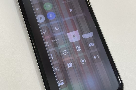 画面に縦線が入って白くもやがかかっている状態のiPhoneXR 画面交換修理即日対応いたします!