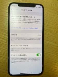 最大容量が75%と、最大容量がかなり低下している状態です。