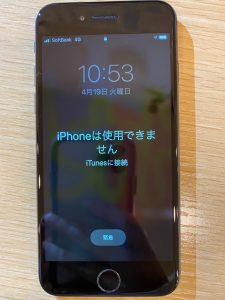さっそく、端末を拝見すると画面上に「iPhoneは使用出来ません」「iTunesに接続」との表示が…