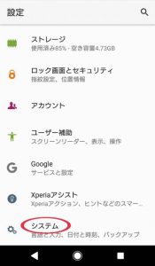 設定を開いたら一番下の「システム」をタップ