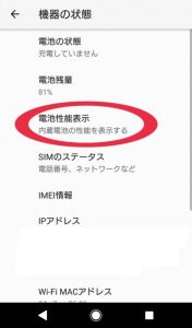 「電池性能表示」をタップ