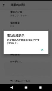 以上の手順でバッテリーの状態が確認できます⇩