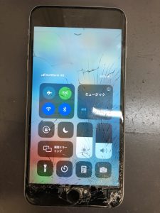 フロントガラスが割れて中身が…iPhone7【画面交換修理】八尾市よりご来店