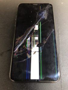 iPhoneX画面が割れて画面全体に縦線が⁈