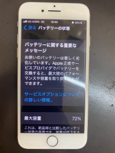 ちなみに、バッテリーの最大容量は72%にもなっている状態でした。