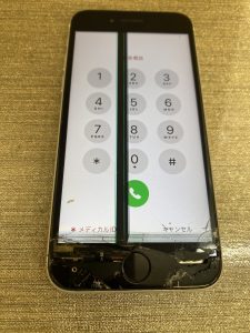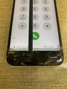 下の画像をご覧いただくとホームボタン付近のガラスが剥がれ落ちてしまい