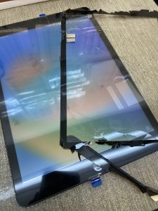 画面がバキバキに割れてしまいガラスも剥がれ落ち