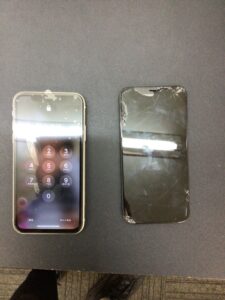 下の画像のように画面が酷く損傷しており、液晶不良を起こしている状態でした。