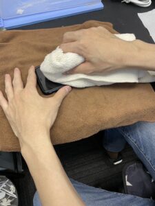 水蒸気がある程度乾いたら、綺麗に拭き取っていきます。