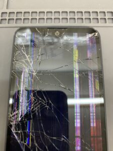 画面全体が割れてしまい、液晶不良も生じ