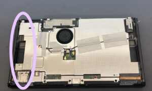 ※こちらの画像は修理途中を撮影しています。カードスロット