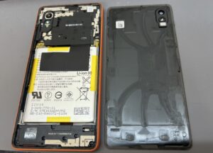 今回の【Xperia Ace Ⅲ】ですが こちらは背面から開けられるモデルであり、バッテリーや基板など色々なパーツに