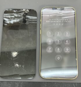 さて、本日ご依頼頂いた内容は現在【急増!?】中のiPhone14の液晶漏れ・画面割れ修理です。