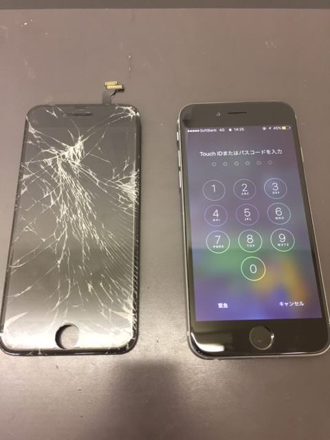 画面がバキバキに割れてしまい修理してほしいとご来店されました(‘Д’)