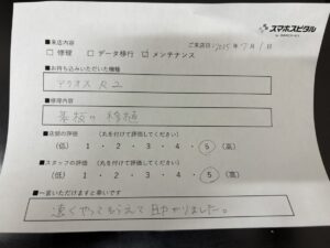 スマホスピタル岐阜 【AQUOS R2】基板移植修理に関しましてお客様の声をいただきました!