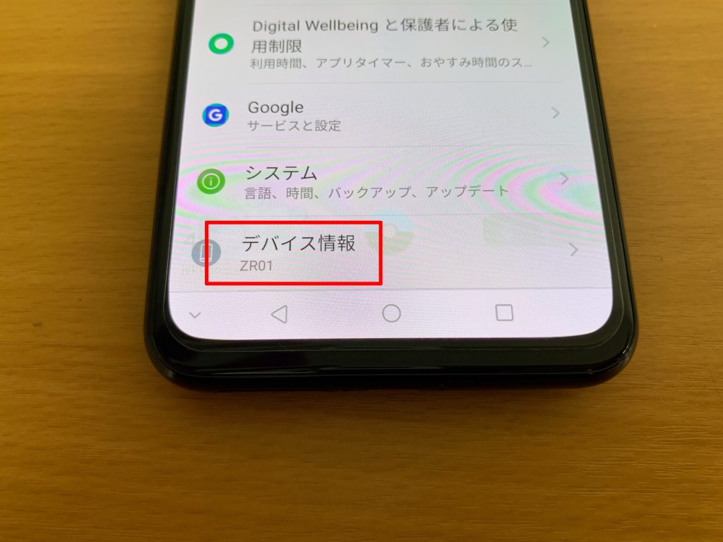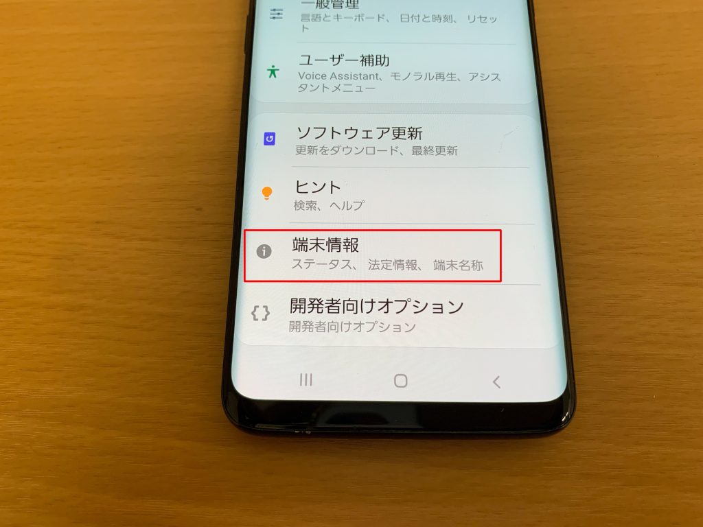 設定を開き、下の方にいくと「端末情報」や「デバイス情報」の項目に記載がある事が多いです。