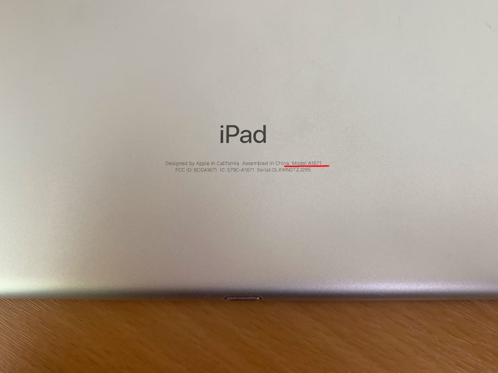 iPadは端末背面のiPadと記載がある下の小さな文字の中に