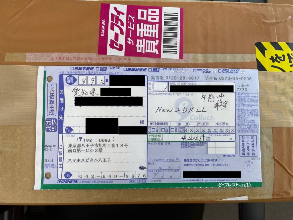 配達員さんがポストに投函する方法での配送ですと修理端末が盗難されてしまうリスクがございます。