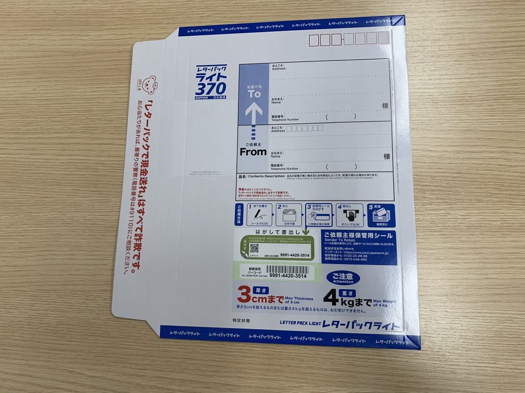 ※これがレターパックライト。青いレターパックでは発送しないでください。