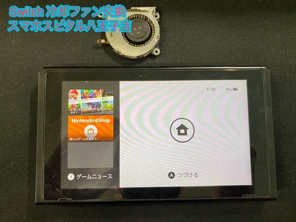 お客様のSwitchは起動時には何もありませんが、数分起動するとSwitch本体の中から「シュッ、シュッ」と異音が聞こえてきます。