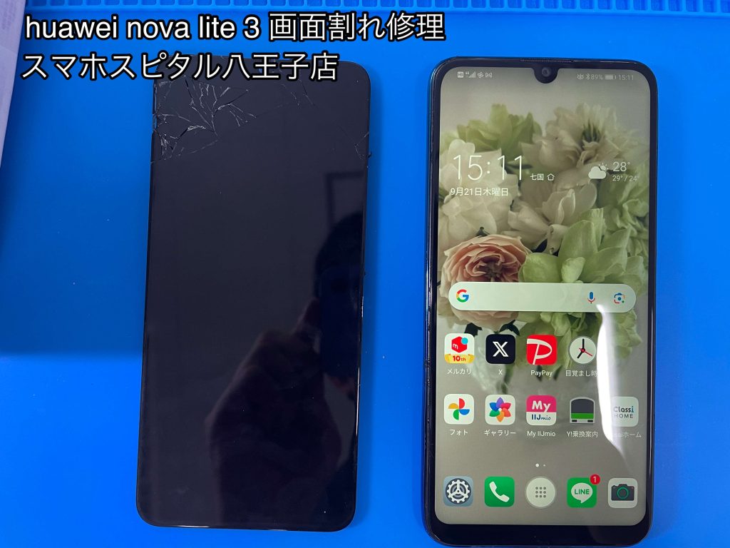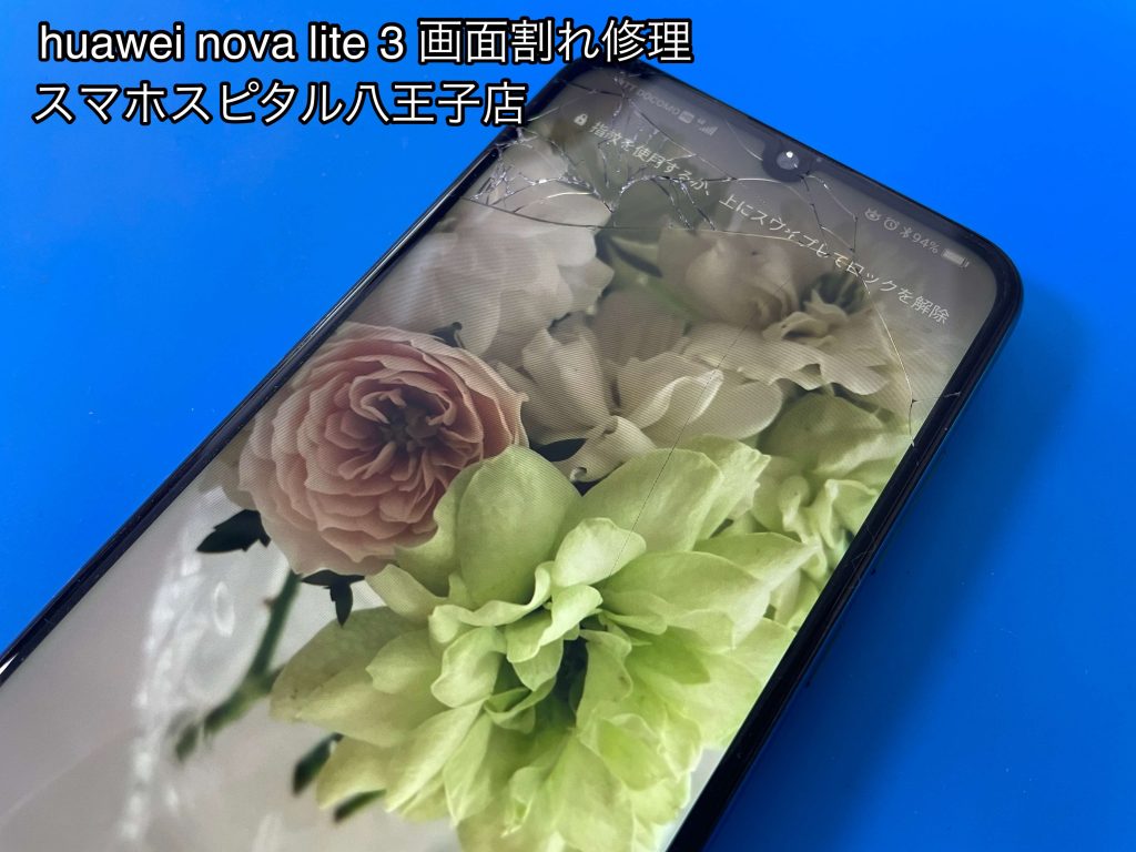 HUAWEI nova lite3を落として画面が割れた!その修理スマホスピタル八王子店でできます!