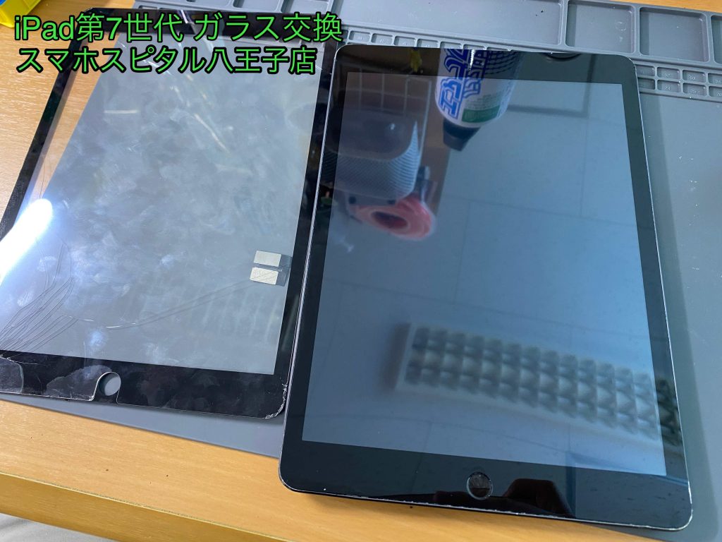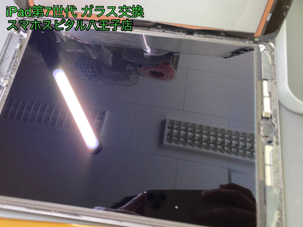 iPad7では、画面ガラスと液晶が別々パーツですので、ガラス面だけの交換となります。