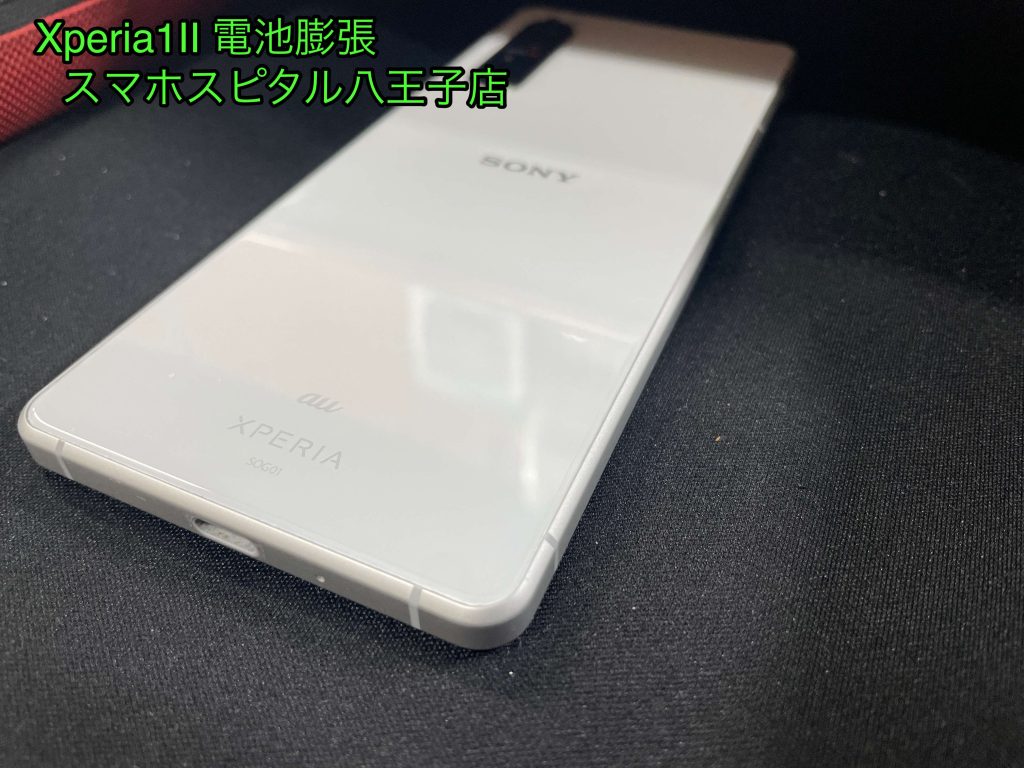 Xperia1ⅱ(SOG01)のバッテリーが膨張し背面パネルに隙間が発生した事に気づいたため修理のご依頼を頂きました。