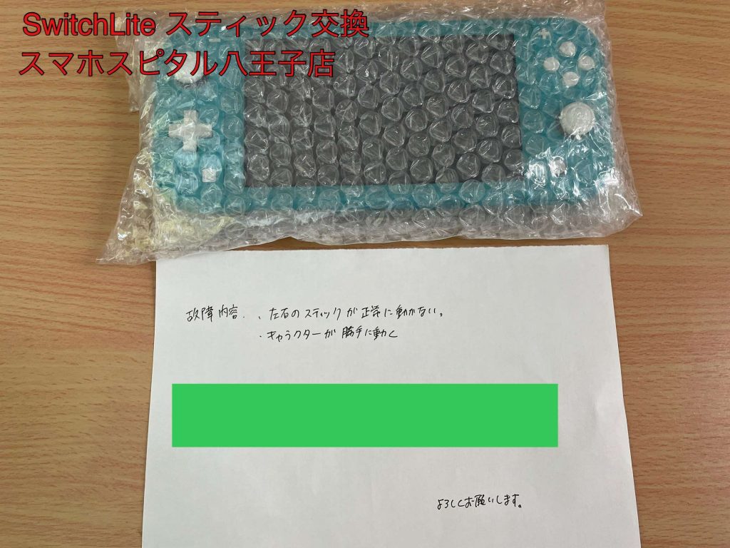 東大和市より、ご郵送にてNintendo Switch Liteのアナログスティックが両方とも破損しているため交換のご依頼を頂きました。
