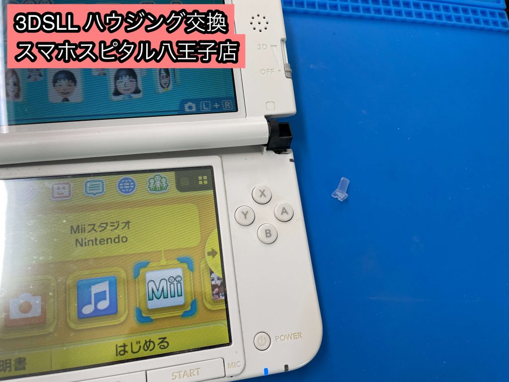 任天堂3DSLLのフレームが割れて欠けてしまい、開閉が困難な状態になってしまったため修理を行いました。