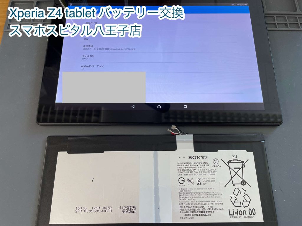 【八王子 Xperia 修理】 Xperia Z4 Tabletのバッテリー交換依頼。最短即日、180分より交換可能です。