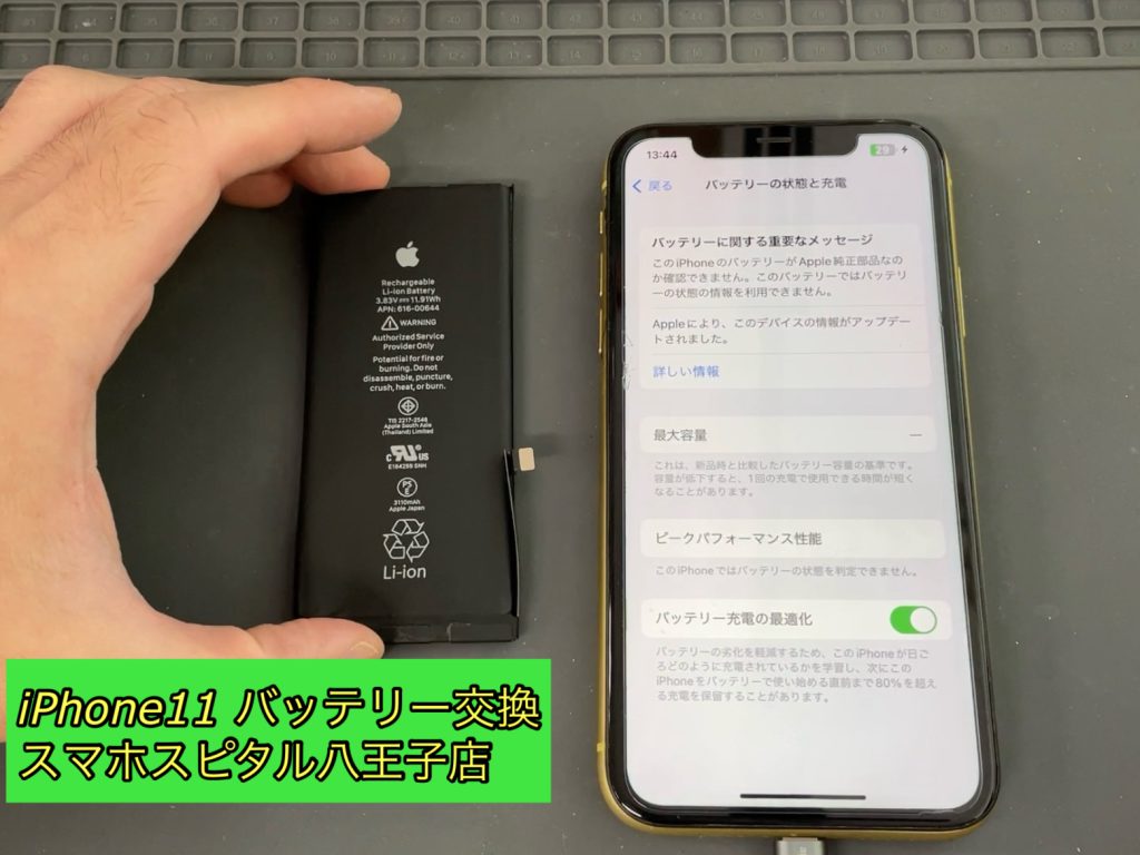 【八王子 iPhone バッテリー交換】最大容量80%のiPhone11 バッテリー交換ご依頼!