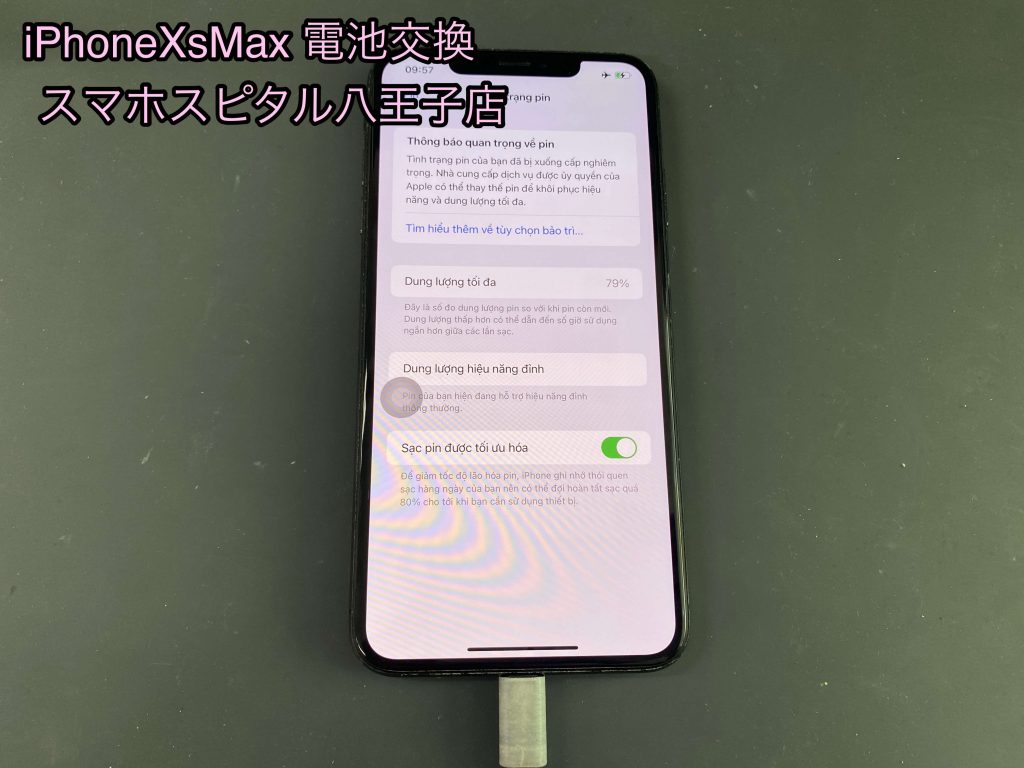 今回ご依頼頂いたiPhoneXsMaxは最大容量は79%まで低下していました。