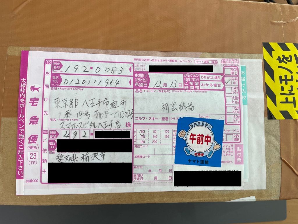 発送より2日後には修理端末がお客様のお手元に到着致します。