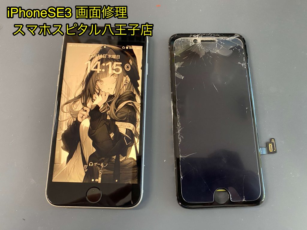 本日、八王子市より、画面ガラスのひび割れしたiPhoneSE3の画面交換修理依頼を頂きました!