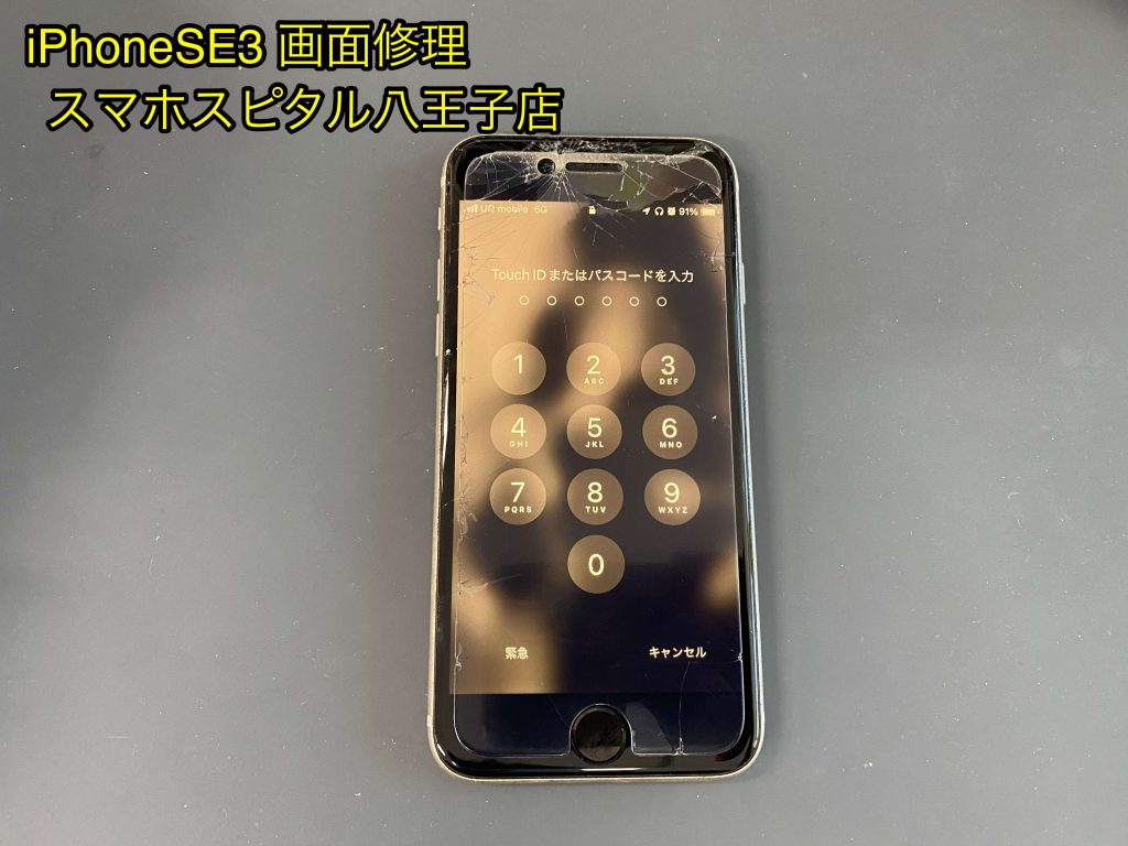 iPhoneSE3 画面ガラスのヒビ割れ修理は当日・データも消えずに修理!スマホ修理の事ならお任せ下さい!【八王子市】