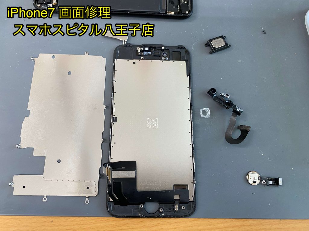 画面に取り付いている、ホームボタンやインカメラパーツを取り外していきます。