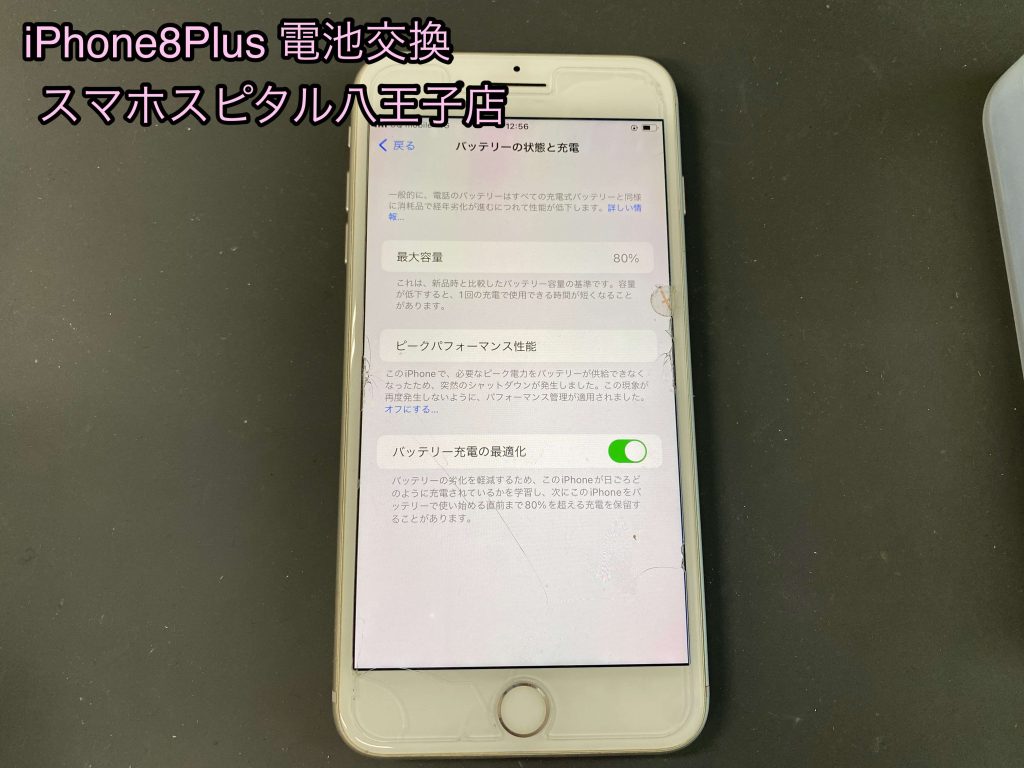 iPhone8Plus 電池劣化の交換は30分~40分程で当日修理可能です!