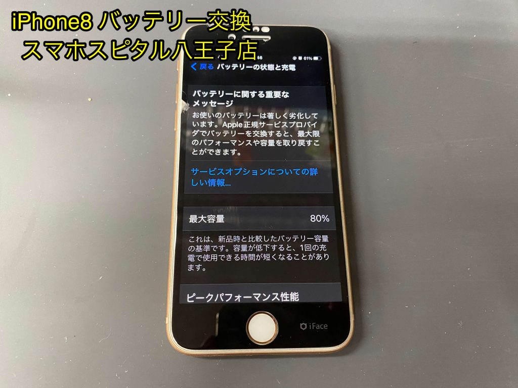 iPhone8 電池交換依頼! 一度も電池交換していない端末!