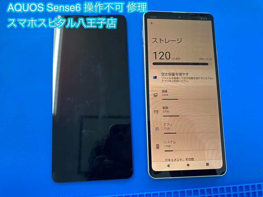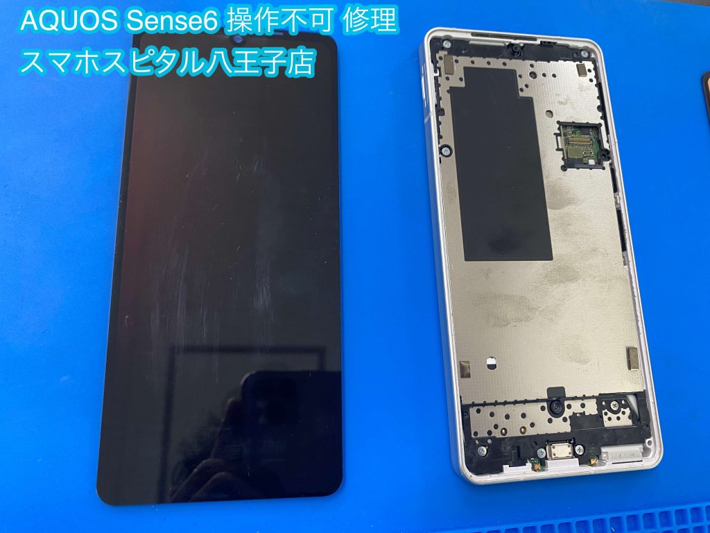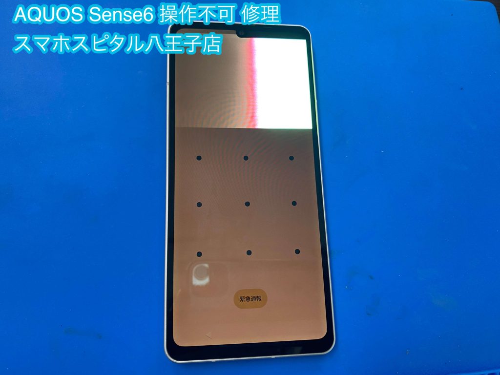 操作不可+有機EL故障したSharp AQUOS Sense6のディスプレイ交換修理へ! AQUOSスマホの修理もお任せください!